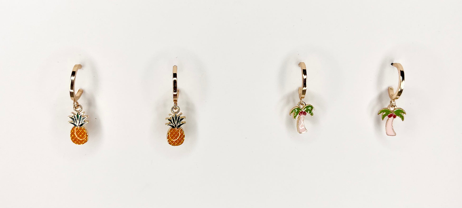 Our Tropical Dangle earring are super cute and fun! We have them in Pineapples and Palm Trees. They clasp on super tight whigh makes them the perfect beach wear accessory.