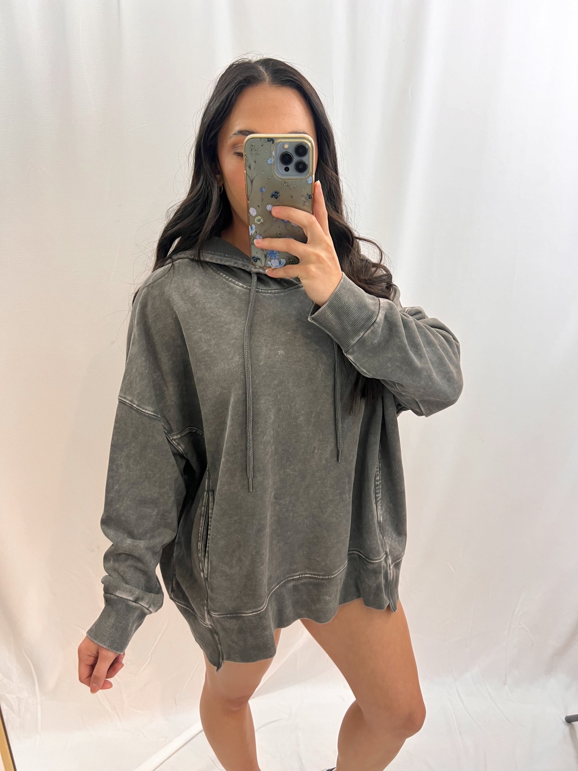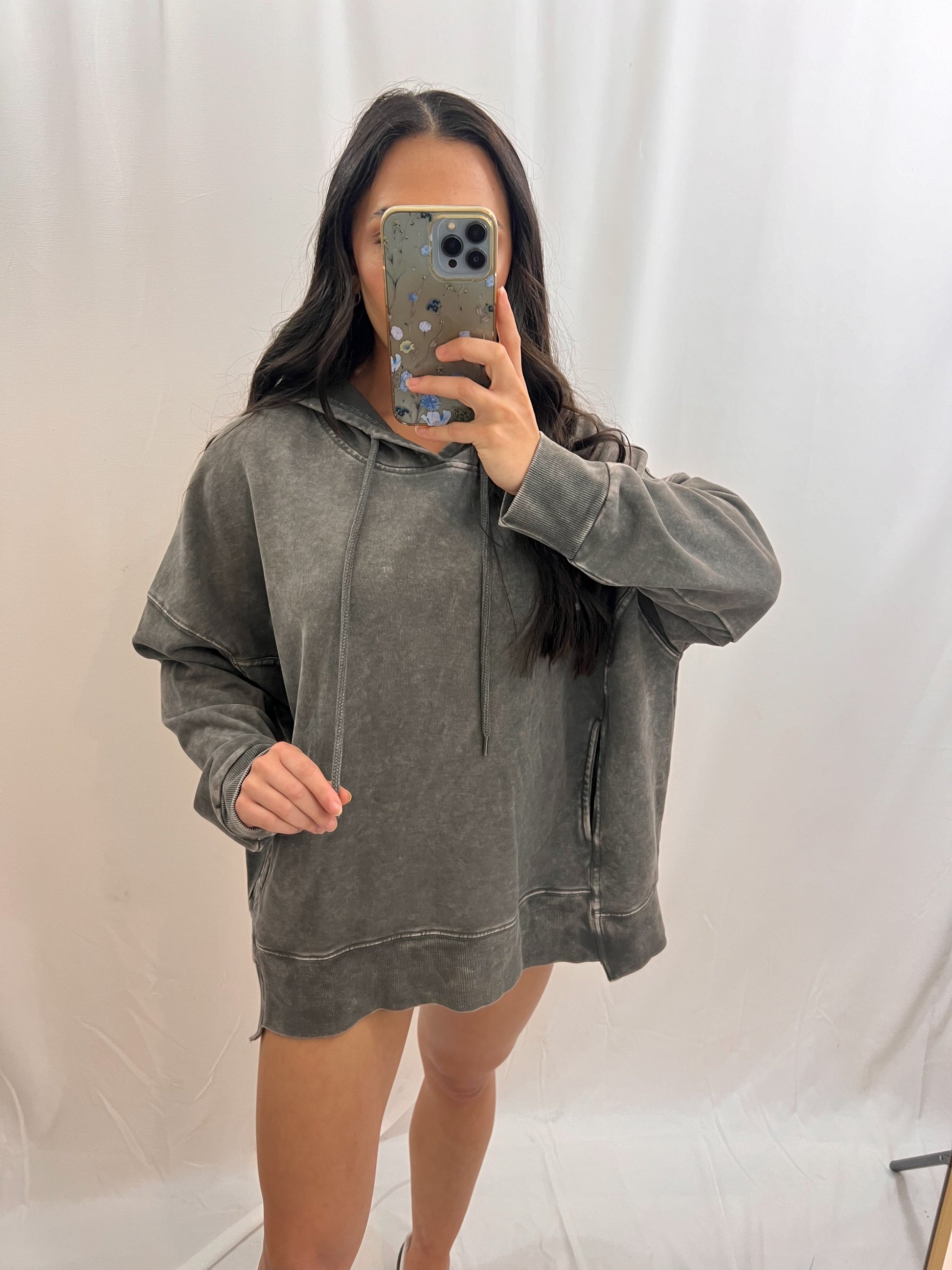 - Our 'Wash Drift Hoodie' features a mineral washed fabric, oversized hoodie, and ribbed cuffs and hem. Color: Charcoal